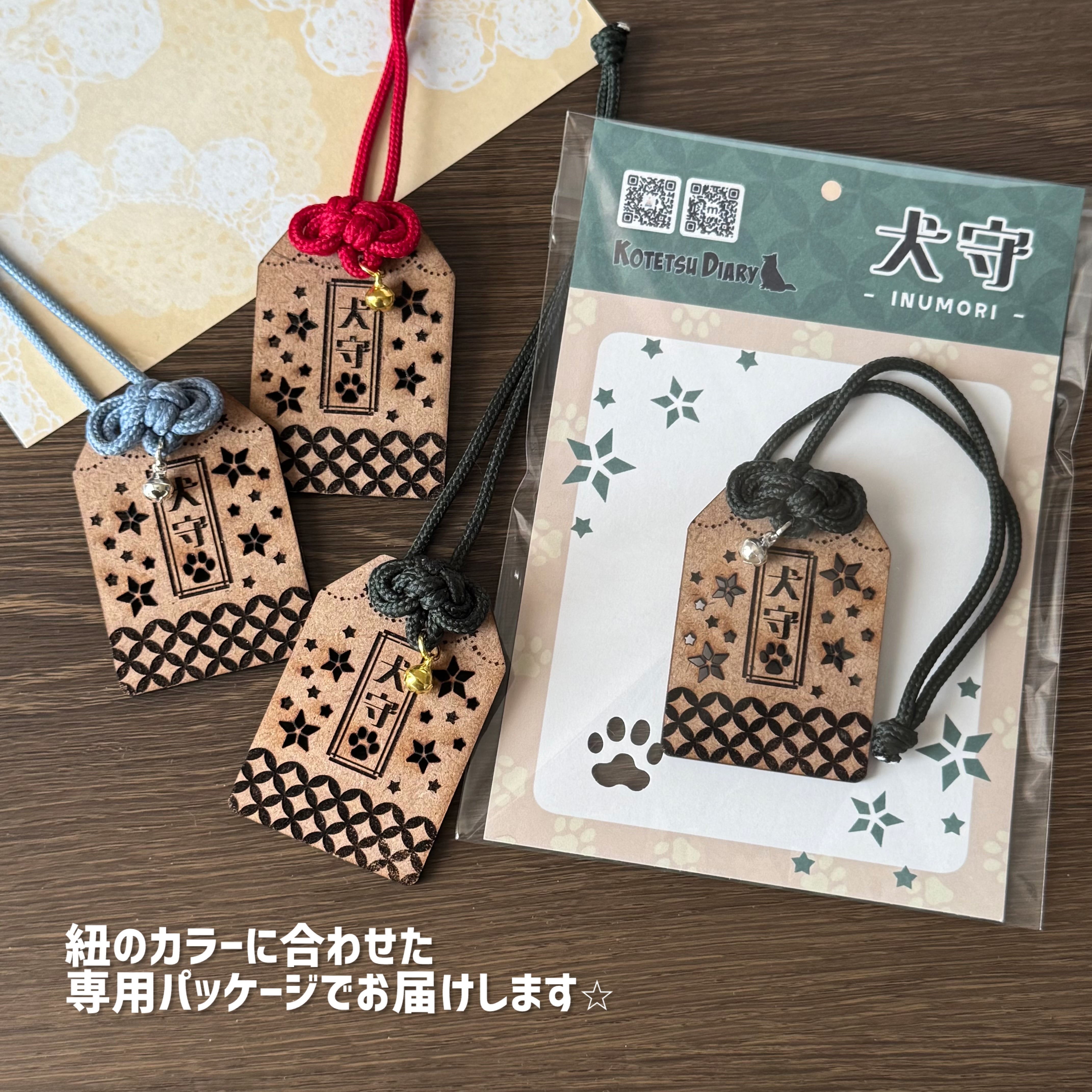 犬のお守り型キーホルダー「犬守」|木製・レーザー加工|犬好きさんに・ペット守護
